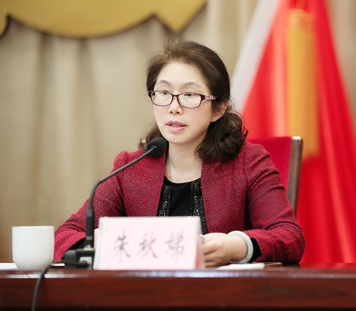 市总工会党组书记、常务副主席朱秋娣作工作报告