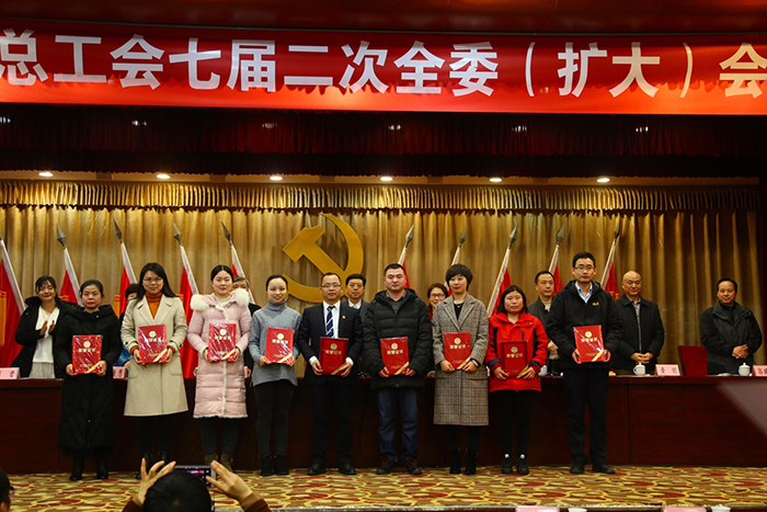会上,市总工会党组书记、常务副主席朱秋娣作工作报告。党组成员、经审委主任黄明作经审工作报告(书面)。会议审议通过全委会工作报告。对全市非公企业工会工作示范单位等先进集体和个人进行了表彰。荆门高新区·掇刀区总工会、国资委工会、洋丰公司工会作了交流发言。