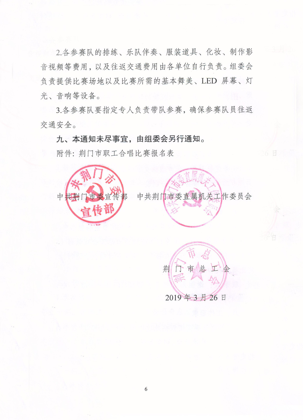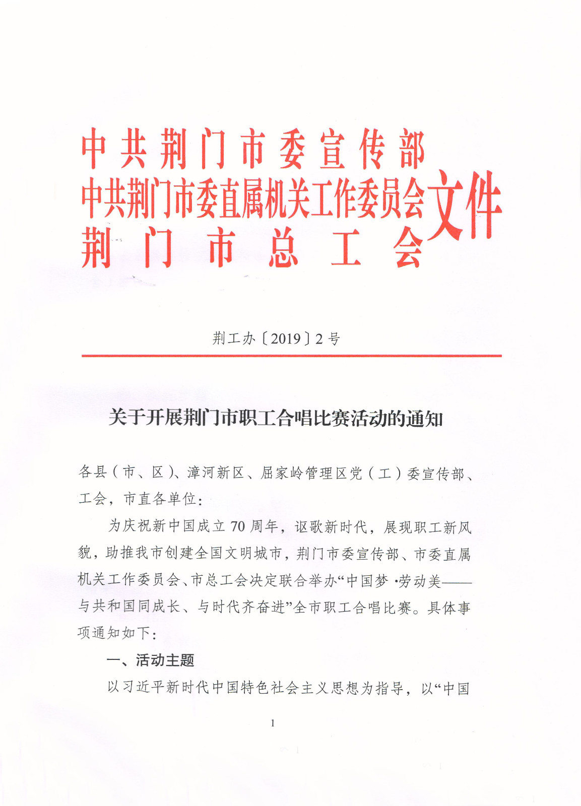 关于开展荆门市职工合唱比赛活动的通知