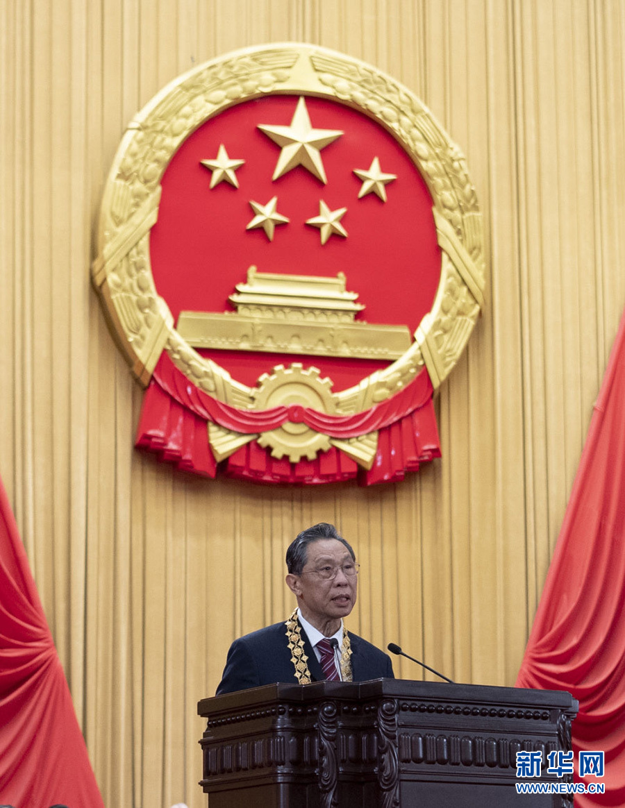 奏唱中华人民共和国国歌、向新冠肺炎疫情牺牲烈士和逝世同胞默哀、宣读习近平签署的中华人民共和国主席令……一项项庄严肃穆的议程,将会场气氛逐渐推向高潮。