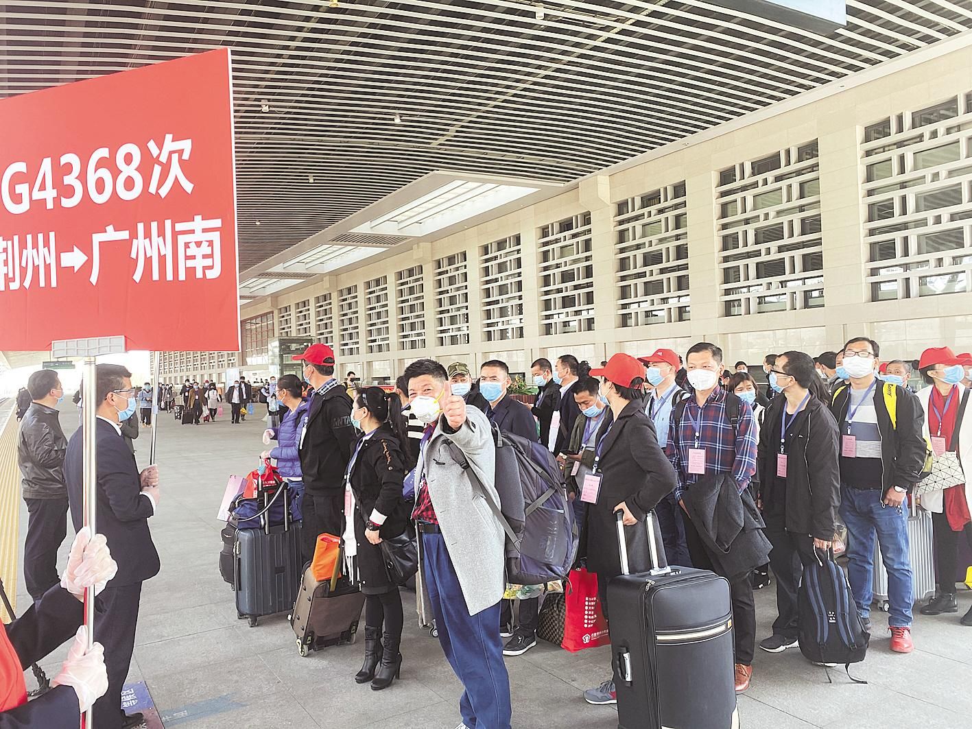 3月,广东组织专列接湖北务工人员返岗。 (湖北日报全媒记者 邓伟 摄)