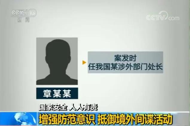 章某某,案发时任我国某涉外部门处长,在境外任职期间,某国间谍情报机关利用其妻子将章某某策反,在感情拉拢和金钱利诱下,章某某为该国间谍情报机关提供了大量工作机密。任职期满回国后,章某某仍与该国间谍情报机关频繁会面,并按对方要求提供了大量国家机密。最终,北京市中级人民法院以“间谍罪”判处章某某死刑,判处其妻有期徒刑十年。