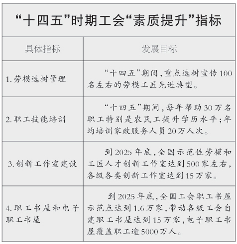 “十四五”时期工会“素质提升”指标