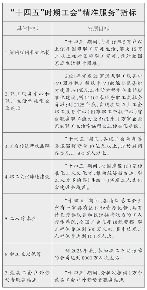 “十四五”时期工会“精准服务”指标