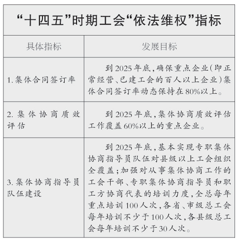 “十四五”时期工会“依法维权”指标