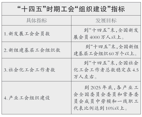 “十四五”时期工会“组织建设”指标