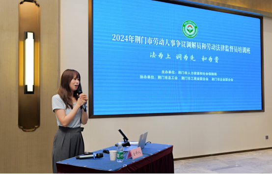 为深入学习贯彻习近平总书记关于坚持构建和谐劳动关系的重要论述,认真落实党的二十大、二十届三中全会精神,加快推进基层劳动人事争议调解组织和劳动法律监督组织建设行动,全面提升基层劳动人事争议调解员和劳动法律监督员队伍专业化能力,提升基层预防、化解矛盾纠纷水平,7月23日至24日,市人社局、市总工会、市工商联、市企联联合举办荆门市劳动人事争议调解员和劳动法律监督员培训班,来自各县(市、区)、企业、商(协)会从事劳动人事争议调解、劳动权益保障工作的人员代表,共计55人参加培训。
